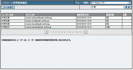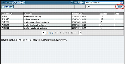 step1 パスワード変更履歴確認画面を表示し、検索条件を入力して「検索」ボタンをクリックします。