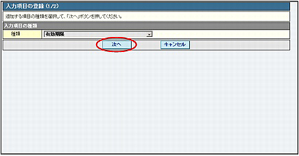 ※入力項目の登録画面の表示方法→「キャビネット用申請書を新規登録する」の手順1~3