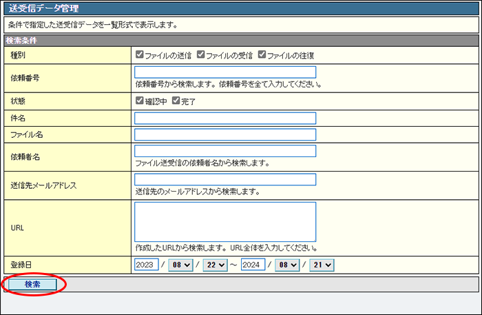 | 依頼者名 | 送受信データを登録したユーザー名を入力します。 |