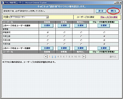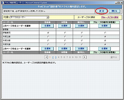step3 ユーザーごとにアクセス権を選択し、「設定」ボタンをクリックします。